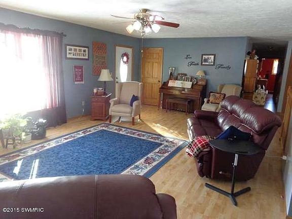 Enjoy Country Living at it's best and bring your horses ! Quality built newer 3 bedroom 2 bath ranch set back off the road ,on over 17 quiet & beautiful acres . The home is approx. 12 years old ,& looks like new. Gorgeous hickory cabinets in well designed kitchen , main floor laundry ,spacious open concept with 16 x 25 great room. Large master bedroom with nice walk in closet and master bath features whirlpool tub plus walkout to 40 x 12 covered back deck to relax in wonderful hot tub. There's a heated 2 car garage & large 60 x 40 barn w/ 3 horse stalls , water & 100 amp electric. 4 separate fenced pastures with electric fence. Huge partially finished basement , 9 ft ceilings plumbed for wet bar and 3rd bath. LP high effic. furnace plus has side kick wood burner . 1 year home warranty