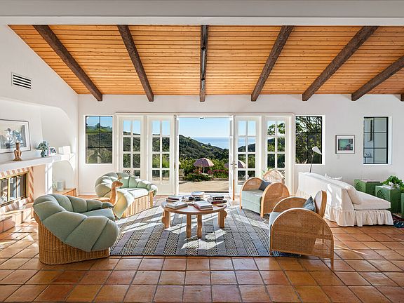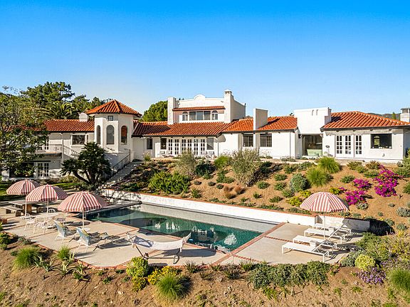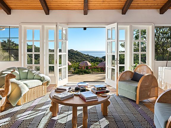 Welcome to Rancho Pellicano! High above some of Malibu's best beaches (El Matador, El Pescador,Broad Beach) with beautiful ocean views from every vantage of its five completely usable and fully fenced/gated acres, this impeccably styled 5 bedroom, 4 bathroom, almost 6400 sf Spanish Colonial retreat is the stress-removing oasis you didn't know you needed. Step inside your own private Malibu filled with terra cotta floors and vaulted, wood beam ceilings, and find yourself immersed in unparalleled comfort and solitude. Designed to perfection by Lala Reimagined and featured in Architectural Digest, this incredible retreat features a main level with multiple areas perfect for entertaining, a kitchen any home (or personal) chef would die for and a dining room to savor every bite. Down the hall, the primary suite is smartly tucked away from the action, while three more bedrooms offer plenty of room for family or guests. Upstairs, a large den awaits quiet evenings in filled with board games and movie nights. And the downstairs guest suite offers a fifth bedroom with en suite bath, living room with dining area and kitchenette. Outside, enjoy the outdoors all year long with a swimmer's pool, large deck, grassy knolls and access to some of Malibu's best hiking just a short walk away at the Nicholas Flat Trailhead. There is plenty of on-site parking. Also available short term. Please reach out for pricing.