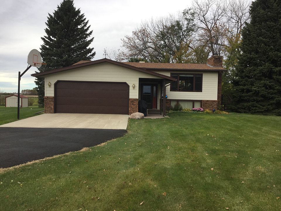 4-bedroom split level with 2-stall attached garage. 2.5 miles west of Valley City on 6 acres of land. 2 full baths, finished basement with electric fireplace, rural water with additional shallow well for outside use. Appliances and window treatments are included. Well maintained with newer windows, shingles, siding and remodeled kitchen. Interior just painted. Ready to move in. 40x60 quonset on property for shop and storage. Additional 6x8 storage shed.