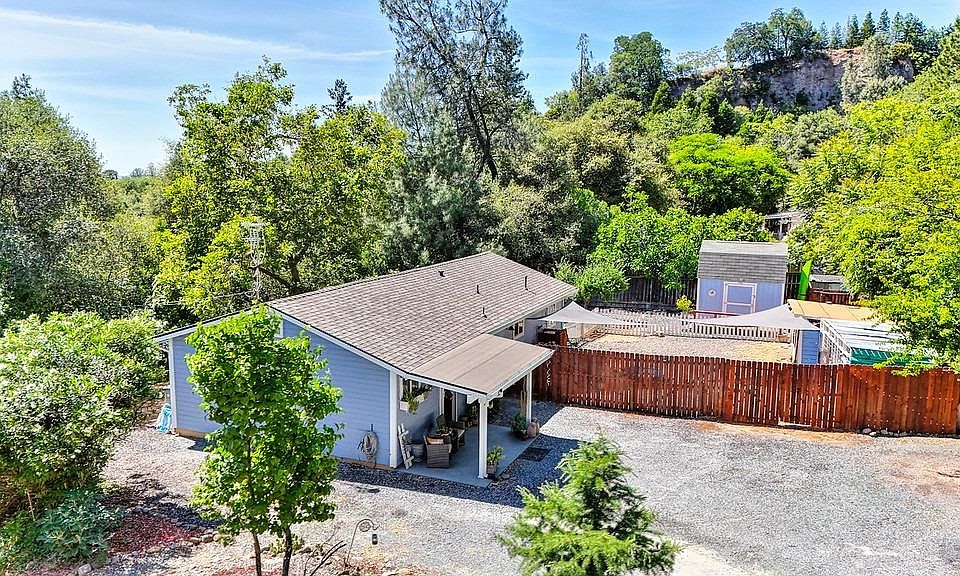 This stunning DT Placerville cottage offers all the modern amenities you desire. Bright, open, and remodeled in contemporary colors and style, it features a great room concept and a state-of-the-art kitchen with stainless steel appliances and cherry wood cabinetry. The living room has a slider leading to a BBQ and dining area with a view of nature. The master suite includes a slider to a peaceful yard, a walk-in closet with a window, and is spacious enough to accommodate an office with its own entry to a spa-like master bath. The secondary bedroom is ample in size, with its own bathroom and separate wing. The home is energy-efficient with low bills and a tankless water heater. The yard exudes a Zen vibe with a bubbling spa, gardens, and fruit trees. Another yard is perfect for pets with a stylish shelter and play area. The property includes a 12x12 shed, a 10x8 shed behind the back gate, fresh paint and siding, a KOI pond with a waterfall, a newer roof, and plenty of parking. It sits on almost 0.4 acres with room for additions like a shop or garage. Just 2 minutes from Main Street's restaurants, entertainment, and shopping. Perfect!