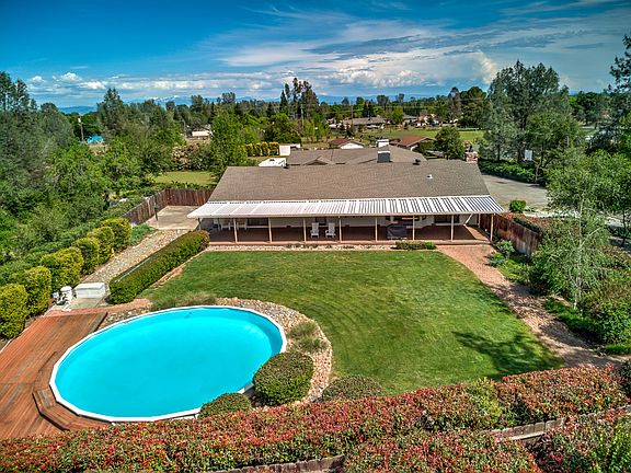 Endless options w/ this rustic home on over 3 acres, mature landscaping, fenced/cross fenced, and a 900 square foot in law unit that includes a bed & bath. Spacious master & open floor plan makes entertaining easy w/ ample storage, 2 two-car garages & several outbuildings, including weight room & full bath between garages. Has shop, barn w/ stall and sheds. Great option for Air BnB or In Law unit!