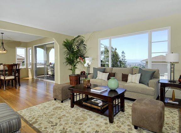 LOVELY REDWOOD HEIGHTS SF/BAY VIEW HOME Amazing views greet you from almost every room of this wonderfully large (2608 sq.ft. approx.) 4+ bedroom, 2 bath, light filled Redwood Heights home. Warm yourself by the grand living room fireplace, while taking in the SF/Bay views through the “floor to ceiling” and corner windows while enjoying the designer colors and gleaming “random plank” hardwood floors that extend into the formal dining room & through the home. Step out onto the deck with your morning coffee to look at the bay. Charming, large breakfast nook with many “classic” windows off the kitchen with newer appliances. One bedroom and one full bath with “period” tile round out this floor. Retreat to the master bedroom that opens up to its own secluded deck and languish in the sun and SF views. Two more bedrooms and another full bath make up the second story. Entertain in the expansive family room that leads out to the level, large yard perfect for games and play with grass, flagstone pathway and flowering plants, perfect for afternoon BBQs. Offered at $829,000 Open Sunday, June 24th 1-5PM