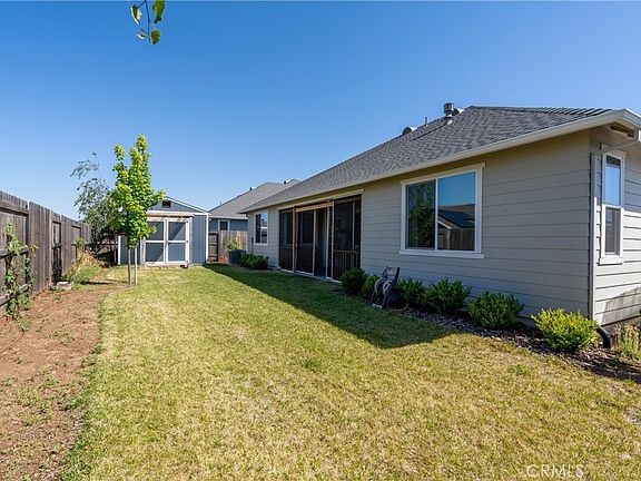 Welcome to your dream home! This home has an open floor plan with a stunning kitchen with beautiful tile backsplash and a large island that opens to the living room. There is a bonus room that would be great for an office or playroom. This desired residence combines the benefits of a solar system with a Enphase battery backup, ensuring a sustainable and reliable energy supply. The home is on spacious corner lot with a garden and shed in the backyard. Nestled in a prime location, this home is ideally situated near shopping centers, Bidwell Park, scenic walking and bike trails, offering the perfect blend of natural beauty and urban convenience.