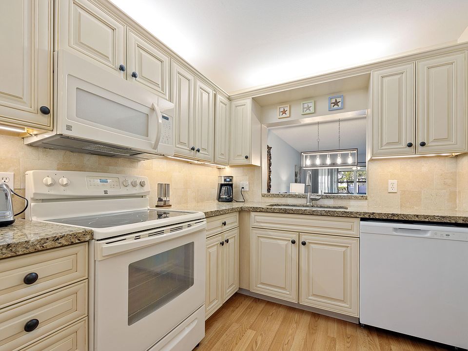 Beautiful and pristine 1st floor condo with 2 bedrooms and 2 baths. Updated eat-in kitchen with gorgeous cabinets, granite counters and tiled backsplash. Brand new dishwasher. Laminate floors throughout. Large master suite with his and hers closets and a bonus sitting area. Updated bathroom with beautiful vanity, granite counter, plenty of storage and a skylight. The 2nd bathroom has been updated as well and has a skylight. Full-size washer and dryer with storage cabinets. Screened patio with sliding acrylic panels overlooking a pretty lake. Designated parking space just by your front door. Sold furnished and ready to move-in. Park Pointe is a well-located 55+community with a clubhouse, pool, tennis, pickleball, exercise room and lots of activities. Pets under 25 lbs welcome