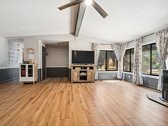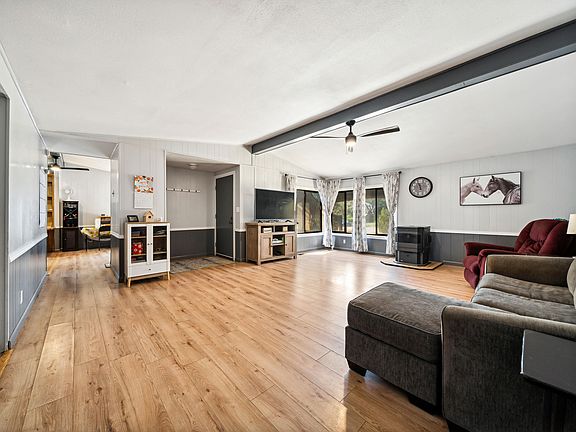 Move in ready manufactured home on just under 1 acre of flat, usable, fully fenced land. This home boasts 2 spacious bedrooms, a versatile bonus room/office/3rd bedroom, 2 bathrooms, a 12x20 lofted barn workshop, high speed internet, a pellet stove, external generator source, and full RV hookups! You're close to schools and grocery stores while being in the country, with plenty of room for animals, gardening, and an ADU. VA eligible!