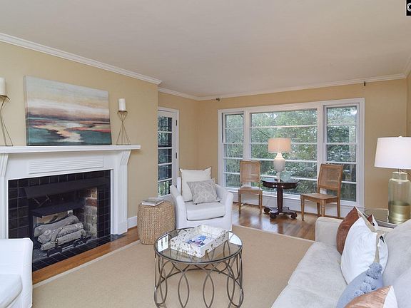 - Living Room: Fireplace, Floors-Hardwood, Molding, Books