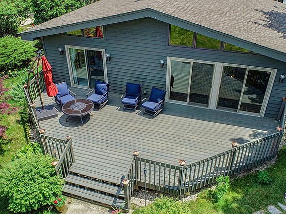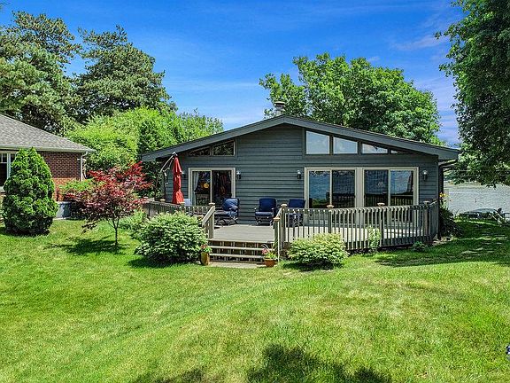 View 3D Video & Drone View Above. Island living! Breath taking lakefront on Chain O'Lakes like no other. Resort-like living on Pistakee & Meyers Bay with this one of a kind ranch home. Relax on your huge deck on the shore of Pistakee. Enjoy amazing sunsets. Grand tiled entryway open to gorgeous family room with cathedral ceiling, hardwood floors and a wall of windows overlooking Pistakee. Open family room has fireplace with spectacular wood beamed ceiling & slider leading to large deck overlooking Pistakee. Updated kitchen with breakfast bar and eating area open to family room with lake views. Master bedroom with vaulted ceiling, fireplace, 2 closets, one of them a walk-in & slider leading to deck. Spectacular master bath with skylight, double vanity, separate shower and oversized whirlpool tub. New updated 2nd full bath. Finished walkout basement leads to 2+ car garage. You have piers on both Pistakee and Meyers Bay. Protected built in boat slip on Meyers Bay. A hidden gem!! Must see!
