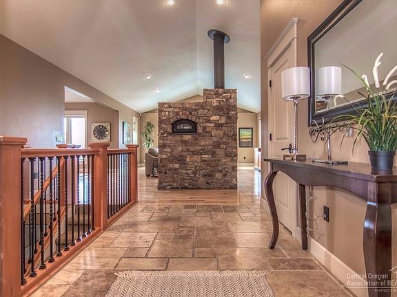 Sweeping Cascade views from Bachelor to Adams! Custom built by Craig Johannesen w/energy efficient, ICF construction. Great room features a full masonry fireplace w/wood-fired pizza oven. Extensive hardwood flooring on main level. Large kitchen offers gorgeous slab granite, high-end appliances, custom cherry cabinetry. Office/den adjacent to kitchen. Main level master suite plus a junior suite on the lower level that features a new bathroom. Oversized 3-car garage plus 2 separate, fully functional shops.