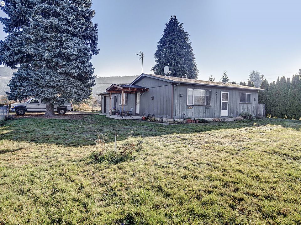 Single level home on .33 acres located 10 minutes from downtown Hood River. Peak of Mt. Adams through the neighbor's orchard trees. 2 bedrooms, 1 bath home with separate dining area just over 1000sqft. Fenced back yard and attached single car garage.