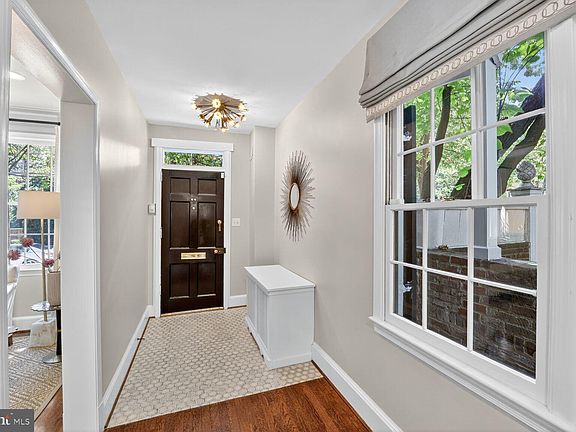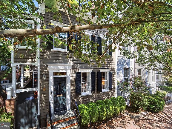 Stunning light-filled Georgetown Townhouse with garden and parking on Cobblestone Street. This elegant, semi-detached townhouse, originally built in 1867, graces a charming one-way cobblestone street on one of Georgetown’s most desirable blocks. This historic property, once home to the famed World War II spy Betty Pack, offers four bedrooms, four full bathrooms plus a half bath, a large professionally landscaped garden, private driveway and a large two car garage. It was included on the 2016 Georgetown House Tour. On the main level, a welcoming foyer flows seamlessly into a spacious formal double living room with custom built-ins and two fireplaces perfect for entertaining. The room leads directly into a large light-filled dining room, boasting a ten foot ceiling, skylight, and serene garden views through large glass windows. The dining room opens into a light-filled family room with three skylights, historic Oriental carved wooden doors, a powder room, and six-foot glass windows and a door wrapping around the back showcasing the flagstone terrace and the expansive, exquisite garden with outdoor seating areas. A newly renovated kitchen boasts new cabinets, new countertops with marble houndstooth backsplashes, a Sub Zero refrigerator, Wolf range, and Bosch dishwasher plus the coveted convenience of a separate front entrance. On the second floor, the luxurious primary suite encompasses a comfortable sitting area and an entire wall of new closets with automatic lighting. The beautifully renovated primary bathroom features new heated hexagon marble floors, a free standing tub, and a glass-enclosed shower with Waterworks fixtures and a double vanity with Carrera marble counters. The guest bedroom is bright, bathed with fantastic light from windows on three sides and a newly renovated en suite bathroom. The third floor features a large bedroom suite, ample storage, and an en suite bath. It has windows on two sides, with three large windows across the back providing a stunning view overlooking the garden and the surrounding trees. It is perfect for a guest suite and an office. The lower level offers a bedroom, sitting area, two large closets, newly updated full bathroom, and a laundry room with washer and dryer. The unfinished portion of the basement provides a tremendous amount of storage, including eight built-in closets and four additional drawer-shelving units, with an exit directly to the patio, garden, and garage. This elegant Georgetown townhouse masterfully combines historic character with modern luxury in one of Washington DC's most prestigious neighborhoods.