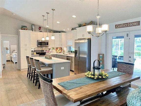 Under Construction. You've never seen a lanai like this! 3/2/2 + office with open concept plan situated in a quaint neighborhood minutes from the beach. Huge L-shaped kitchen with 7' island is perfect for storage and functionality. Impact resistant sliding doors lead out to the MASSIVE nearly 38' screened lanai for the ultimate entertaining area. The guest bath also acts a pool bath for maximum convenience. The owner's suite features access to the lanai, a large walk in closet, dual vanities, and a spa-like walk in shower. What comes with? All wood cabinets, quartz countertops, wood look tile throughout, spray foam insulation, and impact windows/doors. Window treatments are standard on all windows. Photos shown are of home recently completed of same floorplan. See attachments for offer instructions, floorplan, and home specifications associated with subject property. Home scheduled to be completed 10/1/2021. Plenty of room for a pool. $5,000 holds home until completion.