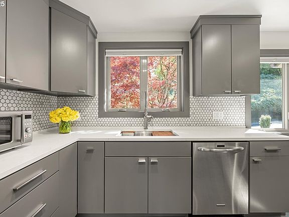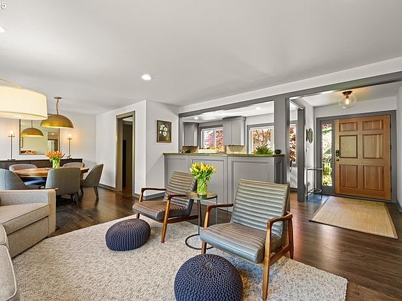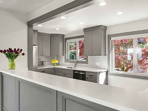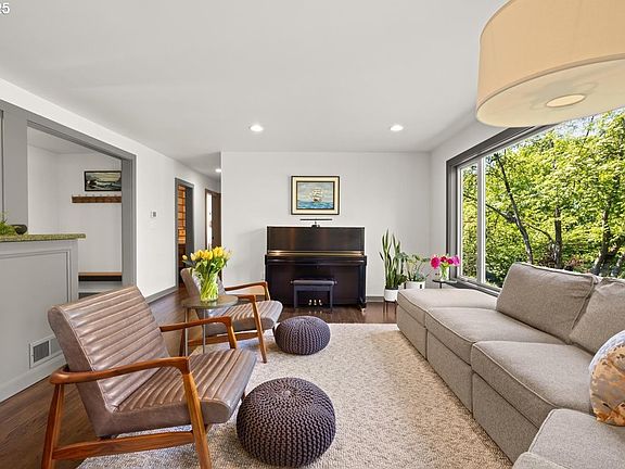 Tucked away on the ever-charming Heather Lane in Portland’s West Hills, this 1954 mid-century ranch has been impeccably renovated and thoughtfully reimagined. With just six homes on this private, peaceful cul-de-sac, you'll enjoy views of Mt. St. Helens and easy access to trailheads that lead to the Zoo, Arboretum, and Forest Park—ideal for daily adventures or strolling to summer concerts at the zoo.Spanning 2,591 square feet, the home blends mid-century charm with modern design. Updates include new stainless refrigerator, sleek quartz counters in both the kitchen and laundry, and a fenced area ready for your four-legged companion. The main floor features heated bathroom floors, Kohler Purist fixtures, wall-mounted faucets, and custom Pental tile and countertops by Artistic Stone Design.An open floor plan allows natural light to pour in, creating an airy, zen-like vibe throughout. Just steps from your front door, the Fairmount Loop invites you to run, bike, or walk its scenic route with panoramic city views as you loop around Council Crest.Live in peaceful seclusion without compromising convenience—just minutes to downtown, the Sunset Corridor, and everything Portland has to offer.And as they say, a picture is worth a thousand words. Take a look! [Home Energy Score = 5. HES Report at https://rpt.greenbuildingregistry.com/hes/OR10219632]