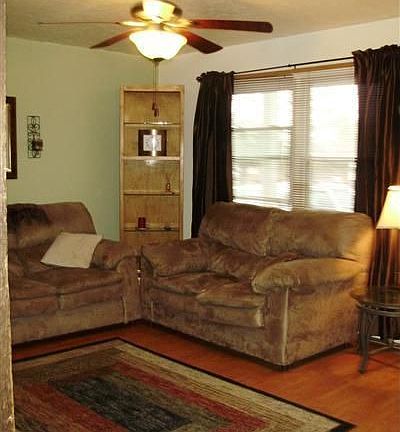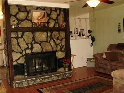 Maintenance free exterior, siding, double-pane windows (tilt in for cleaning). Open, spacious kitchen with french doors, recently remodeled w/ new counters, flooring, and new stainless appliances. Natural stone woodburning fireplace-with indirect lighting above. New ceiling fans in every room. Large utility/laundry room w/ plenty of room for storage. Large fenced in yard with plenty of shade for kids or pets. Double wide gate on one side. Large storage shed.