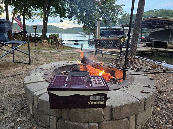 Lakefront propertyPrivate boat dockOpen and cozy layoutFire pit