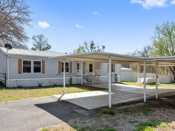 Lake life, Whitehorn Cove, Fort Gibson lake. Circle drive, covered parking for your vehicles & lake toys. Move in-ready, check out the upgrades - granite countertops, custom cabinets, prep sink, all appliances stay PLUS under-counter icemaker, hand-scraped wood floors. Split floor plan, master bath stand alone tub & steam sauna shower. Fully fenced inground gunite salt pool with gazebo. Single & double storage buildings with overhead doors. 50' double carport, 24' single carport and fully covered back deck. Dog kennel, 3 units on slab with separate elec. BONUS: Covered RV pad with separate utilities.