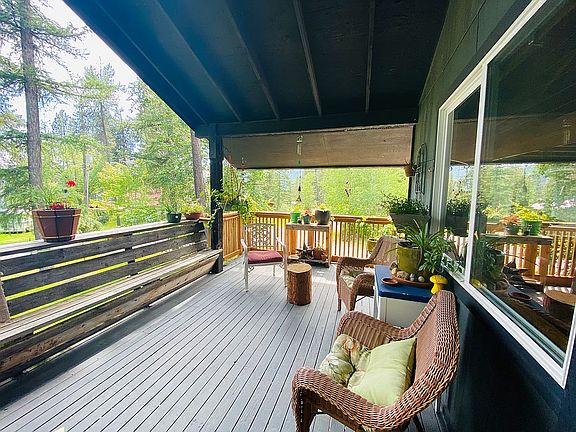 This is your chance to own a home nestled in nature with peek a boo views of the lake and mountains. Open concept home complete with a remodel kitchen and bathrooms, new flooring throughout, tile, carpet and laminate. New Jotul wood stove in main living area. Lots of storage, 2 car garage, and a carport. New double pane windows, fresh paint inside and out. Metal roof less than 5 years old. Downstairs has 1 bedroom and bathroom along with 2 other storage rooms. Laundry downstairs. Newly added wood shed Large fenced back yard with plenty of room for a garden. Option to join the private beach association. Don’t miss out on this on!!