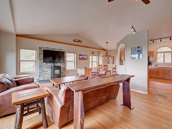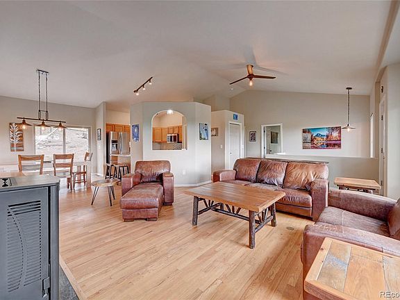 You'll find you're nearly living off the grid with the fully owned solar panels with brand new battery backup, 2 brand new pellet stoves, one for each floor, a view of Pikes Peak from your new Trex Deck, new 6' fence in the backyard with mesh to keep in dogs. You'll also enjoy brand new furnace and water heater just installed this week. New in 2020, high end efficient Hunter Douglas blinds, including one electric blind over the stairs. New paint on the exterior which also has James Hardie siding and stucco.