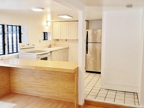 Please read entire ad description before contacting agent. Ground floor unit of a 2-story house. 3 bed, 1 bath with washer and dryer in unit. Street parking only. Ceiling height is less than the std. 8 feet. Majority of living room and bedroom is 7' 1" high. Lowest part in living room is 6' 7" where the beam is. 1st BR and the bathroom is 6' 3". Kitchen is 6' 8". Water and electric utilities are an additional $275/mo. for up to 3 occupants regardless of age. Any additional occupant will be charged $75/mo for water and elec. utility. Must have credit score of 680+, 3x the monthly rent in reserves, good rental references and adequate income. No Section 8, smoking or pets. Living area square footage is approximate. A tenant lives upstairs and the owner lives in the back.