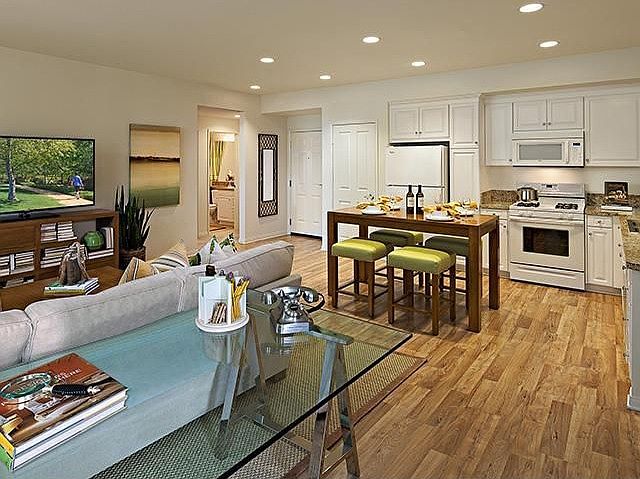 You wil not be disappionted by this beautiful home. This 1 bedroom 1 bath home has a great floor open floor plan which is great for entertaining. Your private bedroom has a large walk-in closet and also a private bath with large shower tub combo. Upgrades include granite counter tops in kitchen and bathrooms, brand new kitchen appliances, raised panel kitchen cabinetry, full size washer and dryer, and crown molding & two-tone paint. Community boasts two salt water pools including one Jr. Olympic-sized, two spas & a wading pool,two outdoor fireplaces & several BBQ areas, clubhouse w/ gaming area, ample seating, dining, full kitchen, plus 2 patio areas, cardio theater fitness center with strength & cardio equipment, conference room & business center w/ computers & color printer, large evergreen canopy trees line the streets & generous lawn parkways, and access to future community park will include ball fields, tennis/basketball courts & tot lot. It will not last!