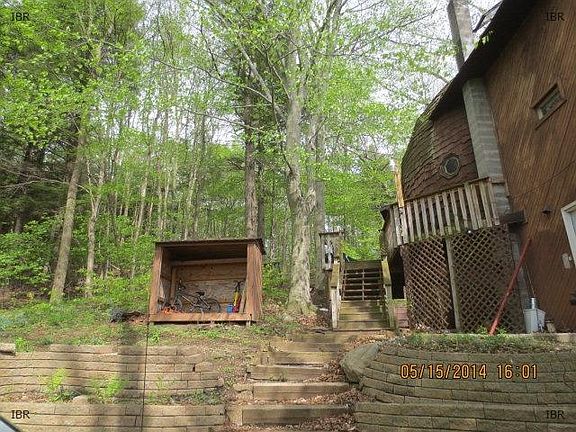 A bit of uniqueness with this octogan house. Settled and nestled in the woods this property is surrounded by wildlife. Live here all year round or use as a retreat. This house has 3 bedrooms, 1 full bath recently remodeled. Three levels of living space full with nooks and crannies. You have to se it to believe it! Outside full of deer, turkey, quails, birds and more. Call for Showing!