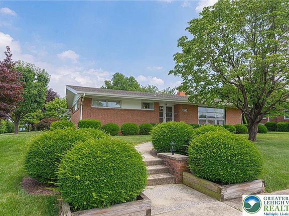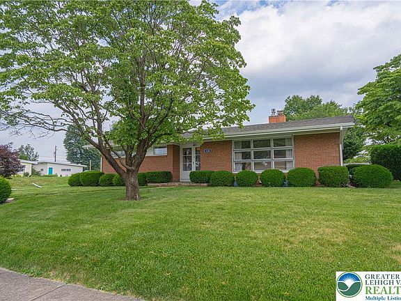 Imagine spending a long summer evening on your covered rear patio, overlooking a park-like backyard. This meticulously maintained mid-century ranch in the heart of Hokendauqua—designed and built in 1958, radiates pride of ownership. Bright contemporary windows flood the living room with natural light, beautifully framing the clean-lined fireplace. The galley-style eat-in kitchen showcases original slab-style solid wood cabinetry and built-in, glass front, storage in the dining area. The main level includes three bedrooms and a full bathroom. The front bedroom has served as a cozy den in the past. Downstairs, the finished basement is perfect for entertaining. A “rec-room” features a wet bar, another full bathroom, and a second kitchen. The exterior walk-up stairs to the rear patio—makes this space ideal for summer gatherings. A recently upgraded high-efficiency gas furnace ensures peace of mind year-round. Attached is an oversized two-car garage, equipped with built-in cabinets and a full workbench—perfect as a hobby workshop and winter car storage. This sought-after Hokendauqua community—known for its tree-lined streets and close-knit suburban feel, is just minutes from Allentown and Rt 22. You are unlikely to find another ranch this lovingly maintained and full of character. Don’t miss this rare opportunity to own a home that's been lovingly maintained & cherished for over six decades by one family.**Multiple Offers Received - HIGHEST & BEST OFFERS DUE BY WED, 7/2 at 5pm**