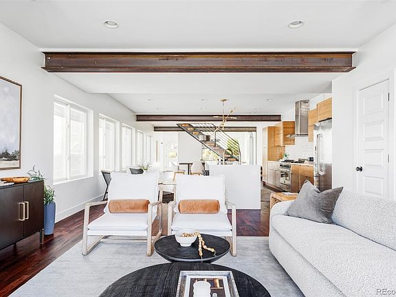 An elegant showcase of contemporary design is unveiled in this LoHi residence. Poised in a prime location, this home sits just moments from vibrant shops and restaurants. Enter into a spacious, open-concept layout beaming with designer details throughout. Enjoy quiet work-from-home days in a home office lined with a glass partition wall. A luminous dining area seamlessly extends into a gorgeous chef’s kitchen boasting high-end appliances, sleek cabinetry and a vast center island crowned by chic pendant lighting. Grounded by a statement fireplace, the inviting living area is drenched in natural light from a unique garage door opening to a patio in a private, fenced-in backyard. A floating staircase ascends to the upper level where a pristine primary suite awaits with an outdoor balcony and a spa-like bathroom with a soaking tub. Sizable secondary bedrooms are complemented by stylish bathrooms with modern tiles and fixtures. Additional storage space is found in a two-car detached garage.