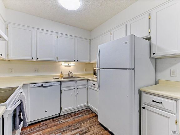 Sparkling clean with new paint, and ready for your personal touches! This main level, no stairs, 1br 1 ba condo at a well maintained, FHA qualified complex offers a generous amount of space, a wood burning fireplace, updated flooring and appliances. Massive walk in closet. Great kitchen and dining space. Big bathroom. Covered patio facing the green belt. Washer and dryer in the laundry room are included. So close to US 285, commute is a breeze! Across from a park, with access to trails, restaurants, shopping. Low HOA includes a pool, spa, tennis courts.