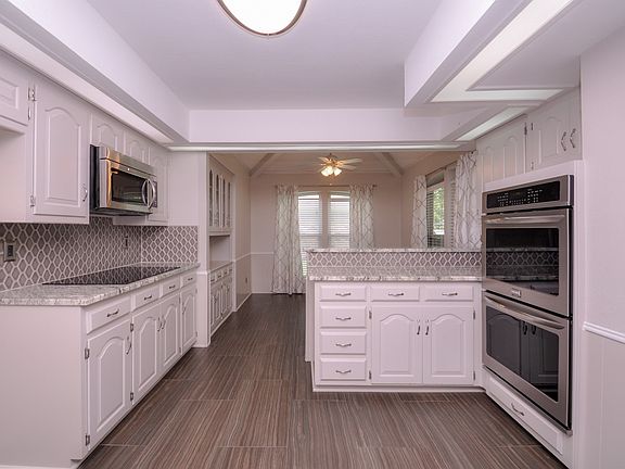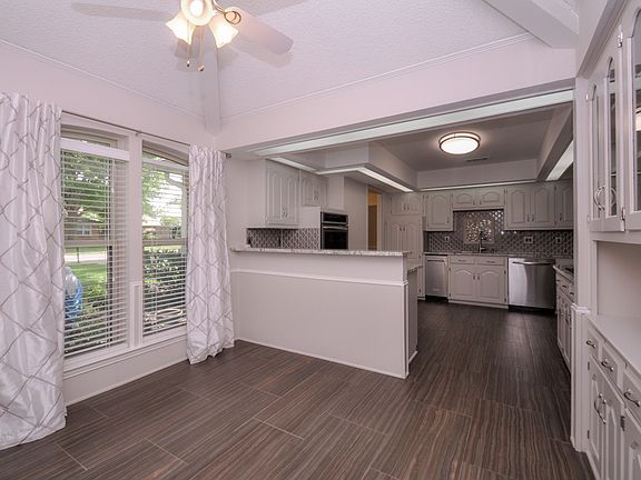 Meticulous attention to detail is apparent throughout this tastefully update home. Four spacious bedrooms all featuring wood flooring, large closets and direct bathroom access. The second living area could also be used as a fifth bedroom. The split fourth bedroom is excellent for guest or a mother in law suite. Enjoy the beautiful family room that is enhanced with a wall of windows, stone front fireplace, wood flooring and a wet bar with a wine rack. You will appreciate the attention to detail in the spectacular kitchen. Stainless Steel appliances include, double ovens, trash compactor, microwave and a five burner smooth electric cook top. The kitchen is complete with granite countertops, beautiful back splash, under counter lighting and impressive tile flooring. Two additional bedrooms also have wood flooring, ceiling fans, large closets and a Jack and Jill bathroom. Upon entering the master suite you will be impressed with the stunning wood flooring, vaulted ceiling and windows overlooking the landscaped backyard. The master bath offers two separate granite counter tops and sinks, two master closets, and a luxurious spa-like shower. The home has an oversized two car garage complete with built in cabinets and storage. There is a covered patio, landscaped backyard and a beautiful board on board fence complete with top trim. This home has a spacious laundry room with ample cabinets and room for a freezer. Recently installed new windows are UV polarized, double pane energy star with main frame design for easy cleaning. Interior paint May 2017.