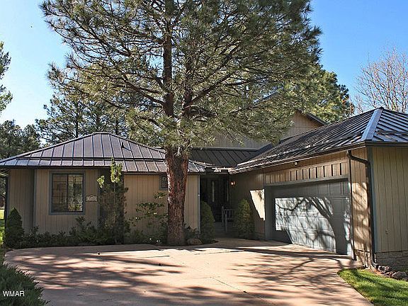 Home on the 13th fairway of Pinetop Lakes Country Club. Panoramic views from over 700 sq. ft. of covered and uncovered deck. Well kept home with 3 bedrooms, 3 baths, newer metal roof, vaulted ceilings, over sized attached 2 car garage, concrete drive and rec. center to boot! Home is over 2,600 sq. ft., Master bedroom downstairs. Lots of space for the whole family.