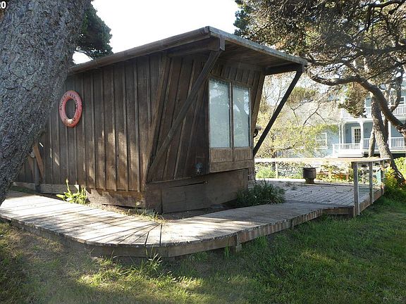 Nautical cabin near the sea! With port hole windows and refurbished boat doors, this charming little home also has a beautiful yard, including a pretty pond. 1BR/1BA rustic charmer that is live-able and perfect for a getaway retreat. Skylights throughout the home for extra light, garden window in the eat-in kitchen and a wrap around deck to enjoy the ocean breezes from. Three sheds for extra storage space.