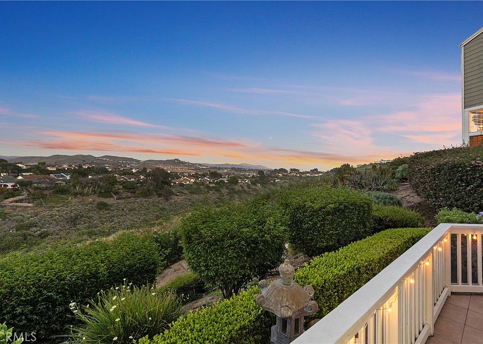 Gorgeous Coastal Gem featuring Ocean, Canyon and Coastline Views in the quiet, gated enclave of Marinita Townhomes. This 3 bedroom, 2.5 bath end-unit townhome is just minutes from Dana Point Harbor! Luxurious appointments abound in the open, remodeled, living area with dramatic high ceilings, abundant natural light, sleek fireplace and paned windows with stunning views. Elegant Italian porcelain tile flooring throughout the main floor offers ease of care and dramatic sophistication. The chef in the family will feel right at home in the remodeled kitchen boasting sleek Caesarstone countertops, designer backsplash, and stainless steel appliances. The oversized island makes for a great place to gather with friends and family. Sliding doors in the living area open to a romantic and peaceful patio area for relaxing with a glass of wine and savoring the ocean breezes and lovely views. A large skylight illuminates the staircase leading to the 3 bedrooms upstairs. Retreat to your own private suite complete with a romantic fireplace, walk-in closet, and lovely views of the coastline, hills, and canyon. Luxury and beauty abound in the spa-like remodeled primary bath that features a stunning stand-alone tub, separate shower and beautiful views of the coastline and canyon. There are two additional bedrooms (one with a Murphy bed) and another remodeled full bath upstairs. The attached 2-car direct access garage has epoxy flooring and built-in cabinetry. Completely re-piped and equipped with air conditioning, Milgard windows, a water filtration system and surround sound, this home is move-in ready and waiting for you to enjoy! Residents of this gated community enjoy access to resort-style amenities, including a sparkling pool, two spas, and tennis court. The location, just minutes from Dana Point Harbor, boutiques, dining, and world class beaches, offers the best of coastal living. Welcome to your slice of Coastal Heaven.