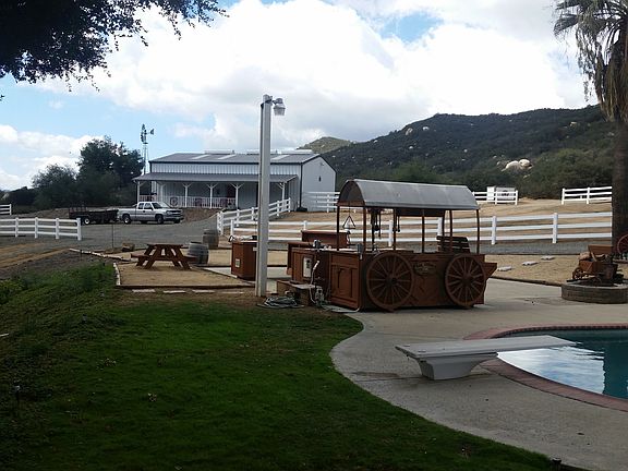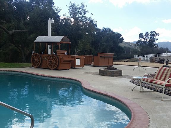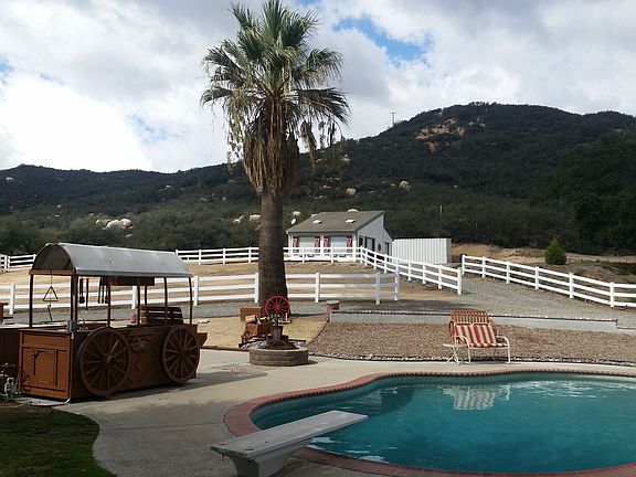 Welcome to Sunset Ranch! Never before on the market! 15 Acres for your Country Home or Equestrian Estate, complete with Bunk House, Main House, and Huge Oversized Garage large enough to house a Class A motorhome over 32 ft and still have room for storage and tools. Fenced for horses, large pasture with smaller corral and miles of trails surround this spectacular home! Bunk House has loft with full kitchen and nice living area with separate washer and dryer. Main home is a single level MFH on permanent foundation, with 3 bedrooms, 2.5 baths, library, game room and formal dining and breakfast room with lots of light! Enclosed/screened patio off master with jacuzzi. More decking with built in seating overlooking amphitheater under a canopy of Oak & Sycamore trees where countless camp outs/parties and movies were shown. Outside are private showers and sinks for guests. Home has a pool, surrounded by a built in Western chuck wagon BBQ & Bar This property is located 22 miles to San Juan and 15 minutes to Lake Elsinore. Paved & gated road to property. You OWN your own water! Great for someone with horses, or someone who wants privacy and nature. Come enjoy the Sunsets of your Life from your own Sunset Ranch House minutes to the beaches and lake! Happy Trails!