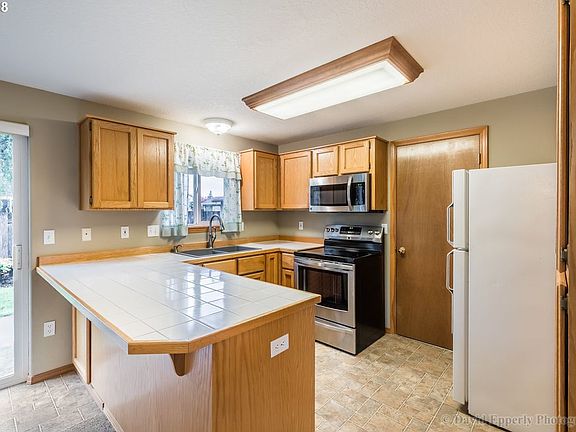 Great Scappoose home highlighted by nice fully fenced yard & good floor plan. Vaulted formal living room plus separate dining & eating bar in the kitchen. Large bedrooms including master suite and master bathroom with dual sinks. RV parking has been landscaped but could be changed and used again. Newer updates include roof, some siding, exterior paint & some fixtures. One year home warranty provided.