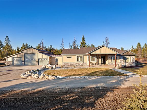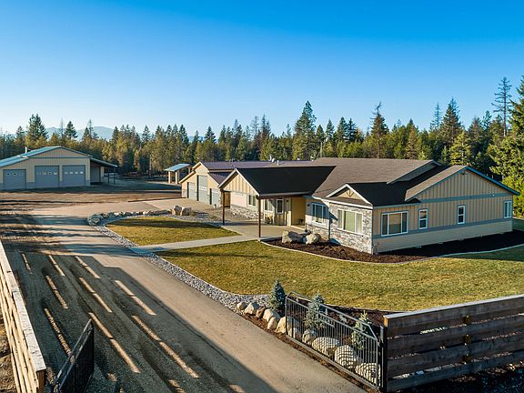 Live the North Idaho Dream! 3,500+ sq/ft Custom Rancher on 10 Acres, with an INCREDIBLE shop! This home has too many amazing features to list. It has been designed and renovated with high-end finishes throughout. Inside you will find a kitchen fit for a professional chef, with beautiful quartz counters, 48'' cooktop, and Cafe appliances. The great room is open w/vaulted ceilings, beautiful LVP flooring, a big fireplace, and a stylish wet bar. The master suite is over 1,000 sq/ft alone and is highlighted by an incredible bath which includes a massive walk-in shower connected to a sauna. The main home is connected to a large 4+ garage that includes an office room and work-out/craft room. Once outside you'll enjoy over 10 private acres.