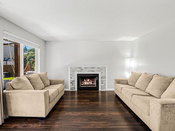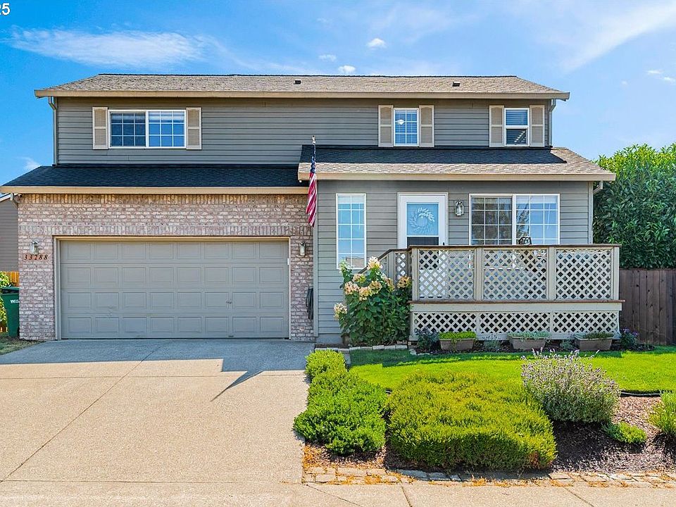 This inviting two-story Scappoose home blends comfortable living with thoughtful updates and a prime location. The spacious, fully fenced backyard offers privacy and versatility—perfect for summer barbecues, gardening, lawn games, or simply relaxing on the new patio. Inside, you’ll find a warm and functional layout designed for both everyday living and entertaining. The main level features newer flooring throughout the living and dining areas, anchored by a cozy wood-burning fireplace. The kitchen, fully remodeled in 2020, showcases classic shaker cabinets, granite countertops, updated stainless steel appliances, and ample storage. A half bath completes the main floor.Upstairs, the primary suite offers vaulted ceilings, a walk-in closet, and a beautifully updated bath with new cabinets and quartz countertops—matching the upgrades in all bathrooms. Three additional bedrooms and a second full bath provide space for everyone.Major improvements add peace of mind, including a roof installed in 2017 and central AC added in 2022. Located within distance to shopping, schools, and local amenities, this move-in ready home delivers a perfect mix of comfort, style, and convenience. Ask about sellers assumable 2.75% Va loan