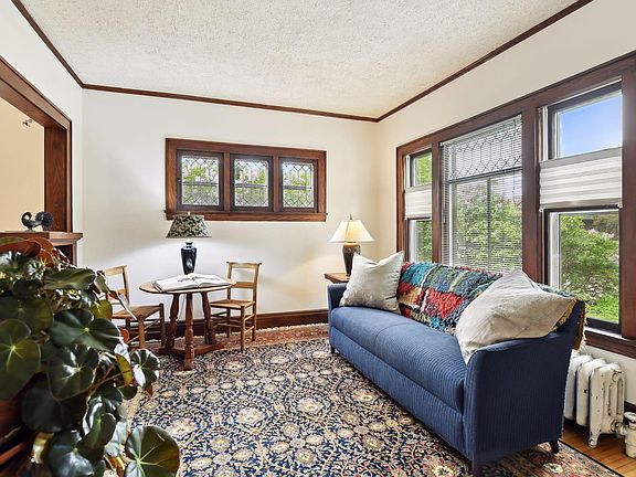 Welcome to this charming 2-story home. The freshly painted exterior invites you inside where you'll find tons of character, with beautiful original natural woodwork, leaded glass windows, and hardwood floors throughout! The large formal dining room has lovely built-in buffet and a full wall of south facing windows! The kitchen was completely redone and features fine Craftsman style cabinets, Silestone countertops & stainless steel appliances. Completing the main level is a den, perfect for home office space. Relax in the screened front porch. Outside, will find an extra deep yard, with established perennials and bordered on the south by a hedge of glorious lilac bushes.