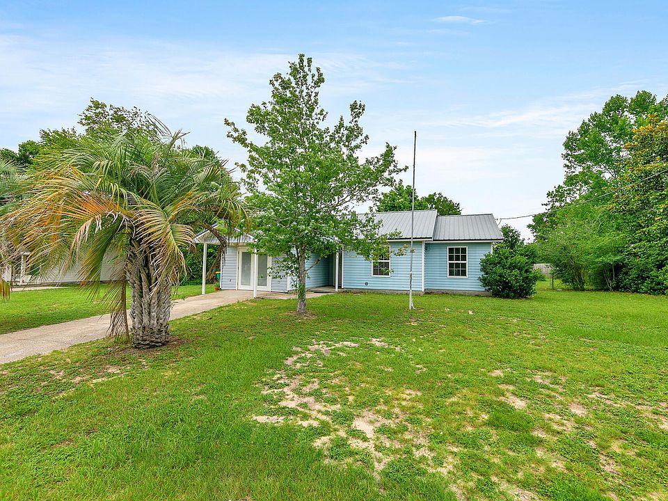 Wonderful, affordable home w/TWO large living areas on huge .46 acre private lot! Bright & airy, the spacious, Great rm w/vaulted ceiling flows effortlessly into the freshly painted dining rm & kitchen. A 2nd large, bonus room w/French doors provides ideal space for a 2nd living room, play room, office, media room or 4th bedroom. Freshly painted cabinets, Corian counters & pantry accent the kitchen. The master bedroom offers his & her closets & an en-suite master bathroom. Other features include a large laundry room/2nd pantry area & metal roof. New HWH & 5 year HVAC provide peace of mind. The giant, private fenced backyard w/large exterior shed, provides plenty of room for play, relaxation and/or a pool. Conveniently located close to I-10, schools, shopping & bases are close by