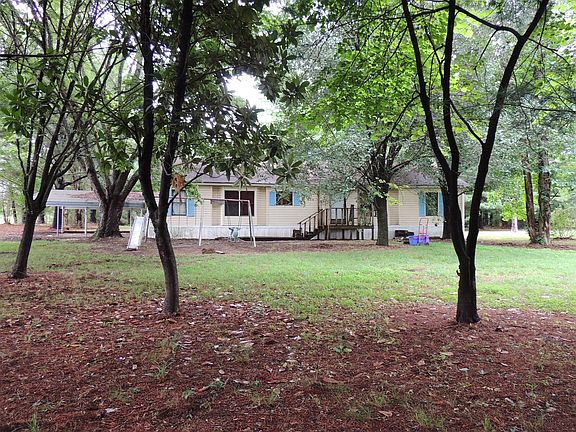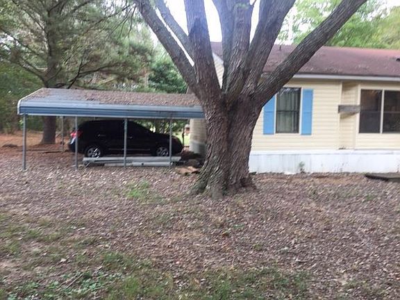 Beautiful 5.05 level acres in the country. Split bedrooms, large living area, mud rm/laundry rm combo, large master bath with sep. shower/tub area. This property is perfect for privacy, animals/wildlife, open field to garden or play ball, excilent yard for entertaining. 2 outbuildings and a 1 car garage great for storage. 2 car carport. Mature trees scattered throughout and along property boarder. Manufactured home on perm. foundation. SOLD AS IS needs some TLC. Great rental.