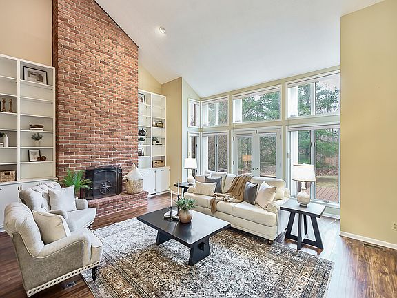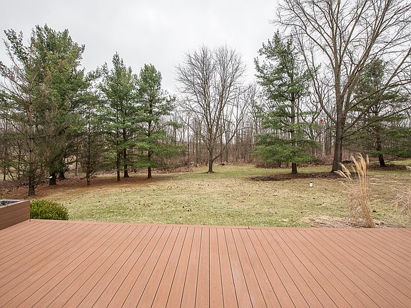 Nestled on a picturesque 1.12-acre private lot, this remarkable property seamlessly blends tranquility, sophistication, and functionality. With 4 bedrooms (plus a 5th in the finished walkout basement), 4.5 baths, and a 3-car attached garage, this home is thoughtfully designed for both comfort and style. Upon entering, you're greeted by a spacious, tiled foyer that sets the stage for the home's gracious design. The formal dining room features French doors, hardwood floors, crown molding, and chair rail accents and is ideal for hosting larger gatherings. The chef's kitchen is equally well appointed with sleek black granite countertops, maple cabinetry, a tiled backsplash, breakfast bar, pantry, and a sunlit eat-in dining area with sliding glass doors that open onto the deck. Adjacent to the kitchen, a butler's pantry with a wet bar leads to the great room, the true heart of the home. This inviting space boasts a dramatic two-story brick fireplace, flanked by built-in shelving, and a stunning wall of windows that flood the room with natural light, and overhead, the upstairs catwalk. French doors provide seamless access to the deck, which spans the full length of the home, blending indoor and outdoor living. The deck itself is an entertainer's dream, featuring a built-in hot tub for year-round relaxation, along with planters and benches that allow you to indulge in gardening or simply enjoy the serene views.