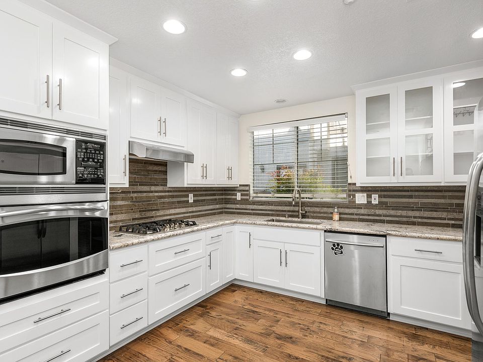 Privately situated behind the gates of the Huntington Community, this 3 bed, 2.5 bath condo will stunningly exceed your expectations. The recently renovated kitchen features stainless steel appliances, freshly painted wood cabinets and granite counter tops. Filled with abundant natural light, the cozy family room centers around an inviting fireplace and opens to the dining area. Off the dining area is a private patio complete with a BBQ. Upstairs, the master bedroom is accented by 2 closets, vaulted ceilings and an updated ensuite bathroom. Completing the upstairs, 2 additional bedrooms featuring newer carpet, a full bath and linen storage. This home also features direct access into a finished 2 car garage with storage space and a washer and dryer. Don't miss your chance to call this charming place home. Rentspree application preferred