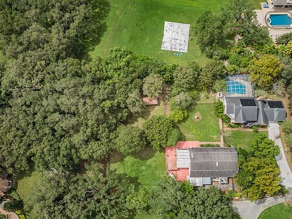 A lengthy hidden driveway opens to this sprawling 1.33 acre residence with large fields, a putting green and sizable swimming pool with screen enclosure. This property boasts a primary residence and large guest home with huge media room w/professional bar area and steam room. Both homes have block construction. The primary residence offers an attractive brick façade, wood flooring, a huge living room with built-ins and gas fireplace, formal and casual dining areas, and three bedrooms, 3 ½ baths. The secondary home provides a wrap-around outdoor patio with a built-in outdoor brick oven/barbecue, a kitchen and 3 bedrooms and a tiled sunroom overlooking the patio and back pastures. There are four pastures with possible multiple uses (including large animals, organic gardening, additional structures for multiple generational families, etc.). The property offers a barn with running water, irrigation system throughout, four fruit trees (two lemon and two lime). Secondary home could be reconfigured and rented for income. This is a prime location in central Pinellas County with easy access to the beaches (25 min), Tampa International Airport (20 min), downtown St. Petersburg (20 min), and downtown Tampa (30 min). Given its size, this property could be transformed and updated in many ways. An excellent value given size and location.