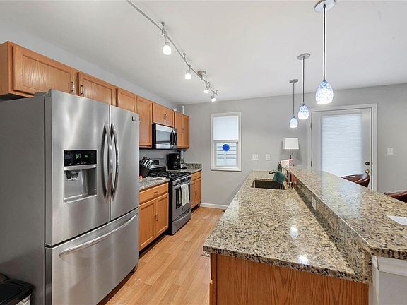 The best location in New Town!! Welcome to prestigious Granger Boulevard. Across the Parkway you are steps away to the waterfront park for kayaking & water adventures! Several upper end properties are within close proximity to this affordable home w SO much to offer! The charming facade features double Verandas for your pleasure. Step out off the Primary Bedroom while you enjoy your coffee and view of Granger Park separating the two Boulevards or slight view of the water. Sellers spared no expense in updates throughout for your gain! The Main Floor w open floor has a Sleek Gas Fireplace, updated kitchen w granite countertops & a french door leading to your completely private yard w new composite deck, enclosed w a privacy fence for pets & children to play. The upper level features a Master Suite w a sweeping veranda view & three additional Bedrooms, plus upstairs Laundry room!! Ample storage with optional kennel in LL! Must see this one and explore New Town amenities today!