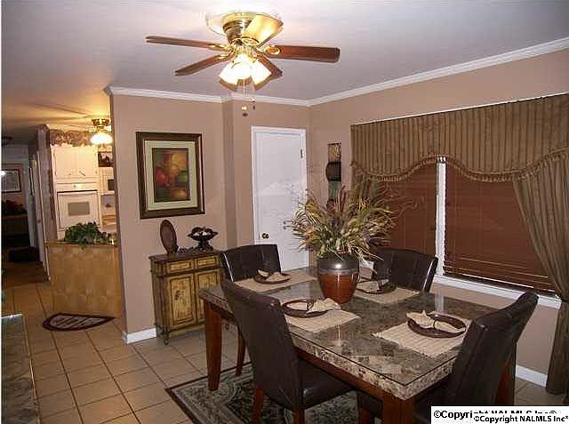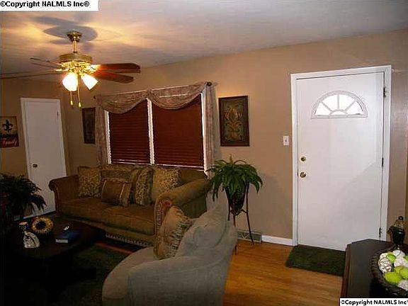 Call Regina Nichols at 256-679-4462 to see this ADORABLE, well-kept 3 bedroom/2 bath home. Crown molding, ceiling fans, 2" blinds, security system. Beautiful original hardwoods in LR and throughout house under carpet. Oiled bronzed hardware throughout. HVAC 2005, new roof 2009. Kitchen, baths and dining room have ceramic tile. Huge fenced backyard. Gazebo stays, refrigerator stays. Home built in 1963 per tax records.