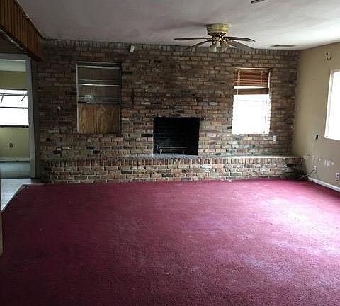 Quaint home with 3 bedrooms and 2 bathrooms. It features a brick fireplace in the accent wall, an open flow from living room to kitchen, and a fenced in yard. It sits on over an acre lot.