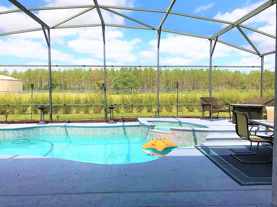 - Pool features: Child Safety Fence, Gunite, Heated, In Ground, Salt Water, Screen Enclosure, Solar Heat, Outside Bath Access