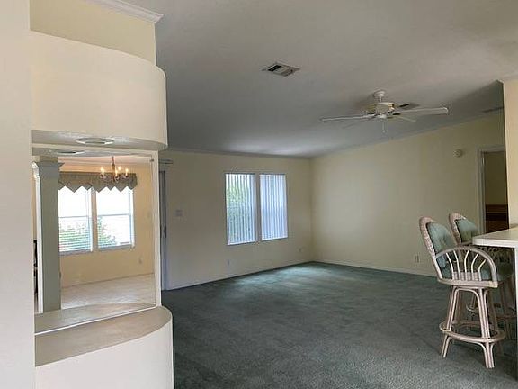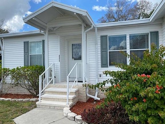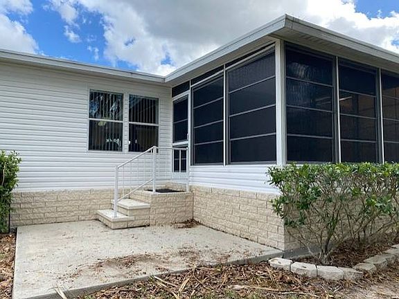 This uniquely designed 3 BR 2 BA home is a new listing in the 55+ community of Ridgewood Estates in Ellenton, FL. It features a large bright white kitchen with an island and counter that will accommodate two bar stools. It is connected to a laundry room which has direct access to the convenient two-car garage. The ample sized living room has built-in bookcases, a ceiling fan, and sliding glass doors to a Florida room which overlooks the private back yard and patio area. There is conservation land behind, so you will always enjoy privacy. There is a sunny office/den/third BR which would be perfect to work from home, have guests or just sit on the window bench and enjoy a good book. The master bedroom is large enough for a king-sized bed and accompanying furniture and has an en-suite full bath with dual vanities and an oversized walk-in closet. The guest room is a nice size with a large closet and there is a second full bath nearby. This home has been well maintained and the landscaping is beautiful. Lot rent is ***$799 per month. Ridgewood Estates is a 55+ community with a spacious clubhouse and banquet room, billiards, library, swimming pool, spa hot tub, shuffleboard, horseshoes, and a fitness center. On-site laundry facilities are also available. All listing information is deemed reliable but not guaranteed and should be independently verified through personal inspection by appropriate professionals. Integrity Mobile Home Sales cannot guarantee or warrant the accuracy of this information, measurements, or condition of any property. Measurements are approximate. Lot rent subject to change.
