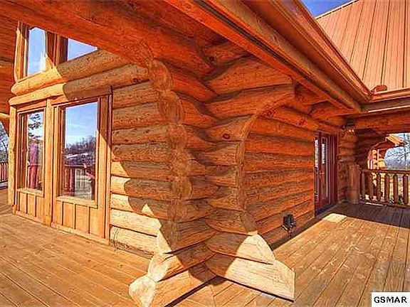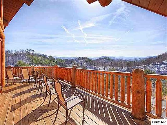 TRULY A SPECTACULAR SIGHT FROM EVERY WINDOW, ALMOST HEAVEN, MOUNTAIN RANGES UPON RANGES RISING AND FALLING IN THE DISTANCE! THE BEST OF THE BEST VIEWS IN THE SMOKIES. THIS LARGE FOUR BEDROOM, 3+ BATHS HAS NO SMALL ROOMS. THE LARGE HEWN HEMLOCK LOGS ARE UNIQUE AND EXTREMELY RARE. UPSCALE HIGH QUALITY - ON EVERY FRONT... FROM THE HAND-CRAFTED AND CHOSEN WOOD BEAMS TO THE WALLS OF GLASS, THIS CABIN WAS REMODELED AND FINISHED IN 2010. You will love the private lot and that fact that it does not hang out over a cliff or have decks with 50' drop-offs, but you can walk right out and enjoy your property. What it does have is comfort, luxury, amazing views, tasteful appointments, and wonderful privacy. The recreation room features a 73' HD television- Blu-Ray, DVR, Wii, pool table, air hockey, games, hot-tub, sweeping mountain views, wrap-around deck, and more. You'll be mesmerized by the towering great room, featuring logs of immense proportion, and a multi-layered view of mountain ranges through a wall of glass. A one of a kind log home - super for investment on over night rental program or fantastic residence. Comes fully furnished. Rental Income was $66,908. last 12 months