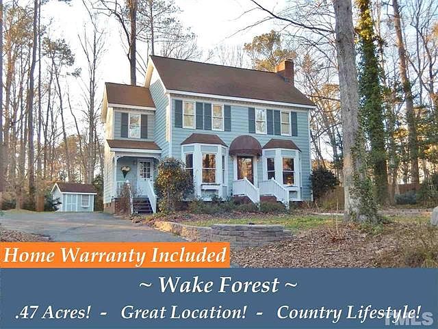 PRIVACY GALORE IN WAKE FOREST! Traditional Country Feel in a Great Location Close to Shopping Centers and Easy Access to Highways for a Quick Commute! Large Master Bedroom and Secondary Rooms, Eat-In Kitchen and Formal Dining Room, Hardwood Floors, Fresh Paint, Lovely Layout, Mud-Room Entry, Large Deck with Gazebo for Entertaining your Guests, Plenty of Storage, Landscaping is Gorgeous Spring through Fall on this Large Wooded Lot w/ .47 Acres, Fenced Back Yard, and More! Warranty Incl. No HOA! A Must See!
