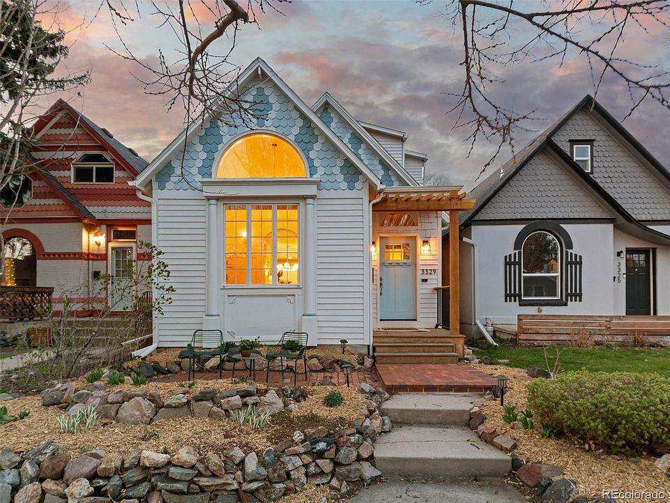 A true Highlands gem! This beauty is in the heart of it all...short distance to the bars, restaurants, and shopping districts of 32nd Avenue, Tennyson, LoHi, and Sloan’s Lake! This 1890s Victorian has been beautifully preserved with tasteful and artistic modern updates throughout. The perfect blend of old world architecture and modern living conveniences. Amazing curb appeal with front stone patio surrounded by beautiful xeriscaping. Front great room with a historic transom window is perfect for reading a book and relaxing in front of the gas fireplace or enjoying the sun from a wall of windows that spans a story and 1/2 up to the cathedral ceiling. The family room, dining room, and kitchen area are open and an easy flow when entertaining. Gleaming hardwood floors throughout the living, dining, and sunroom areas. Kitchen features a breakfast bar, gas stove, stainless steel appliances, granite countertops, and a pot filler over the stove. Another place to relax and soak up the sun is the sun room just off the kitchen. Fully finished, heated and cooled, vaulted ceilings and natural lighting from an entire wall of windows and skylights. Main level bedroom with built in Murphy bed and newly remodeled en-suite 3/4 bath is perfect for a guest suite. Second floor primary suite with en-suite bath and clawfoot tub. Enjoy the view to the backyard from the window seat. Space for a king bed plus night stands and dressers or additional seating area. Third bedroom with charming dormered walls in the style of the 1890s. Just off the wide upstairs hallway is a large nook with a skylight perfect for an office or potential 3rd full bathroom. The backyard is one of the best in the neighborhood complete with a pergola, built-in gas firepit and seating area, herringbone stone patio, and a mature pear tree. 340 square foot oversized detached garage includes adorable “carriage house” style attic storage - potential for ADU?