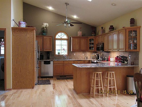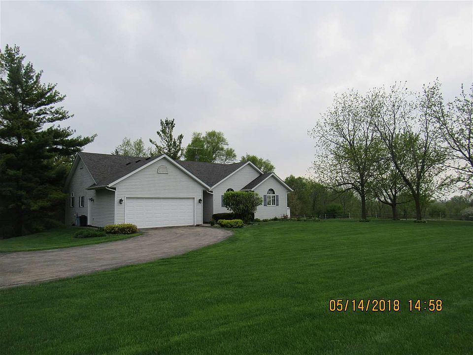 Beautifully maintained ranch. Newer hardwood floors, carpet on main level is new. Spacious kitchen with stainless steel appliances and granite counters. Patio doors to the inviting deck that over looks the woods. Newer wood burning fireplace. Partially exposed finished basement with a family room, 4 bedroom and storage/work area. 60x24 barn is all set up for horses, 3 stalls, water, electric & fenced.